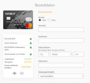 bekannt. Relevant ist außerdem das Geburtstdatum, da die Viabuy Mastercard nur Personen über 18 Jahren gewährt wird. Weitere Informationen, die Viabuy benötigt sind die e-mail Adresse und der Name, der auf der Karte erscheinen soll.